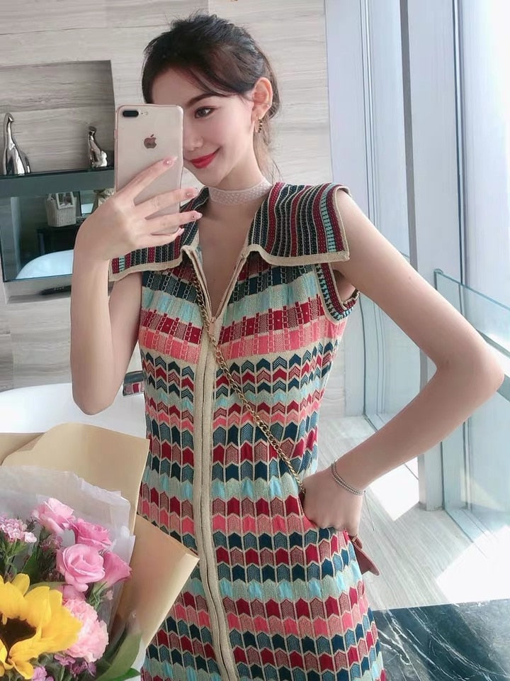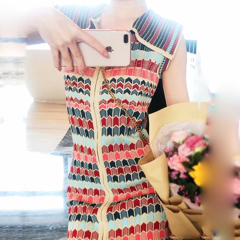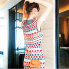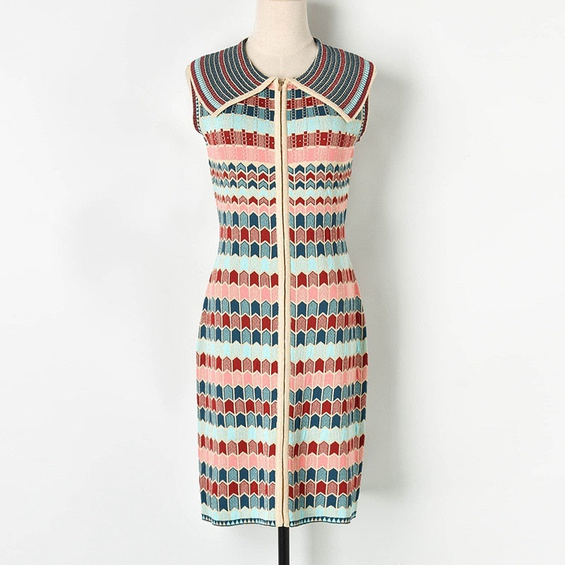 Minivestido con estampado geométrico de colores con cuello vuelto y material de algodón