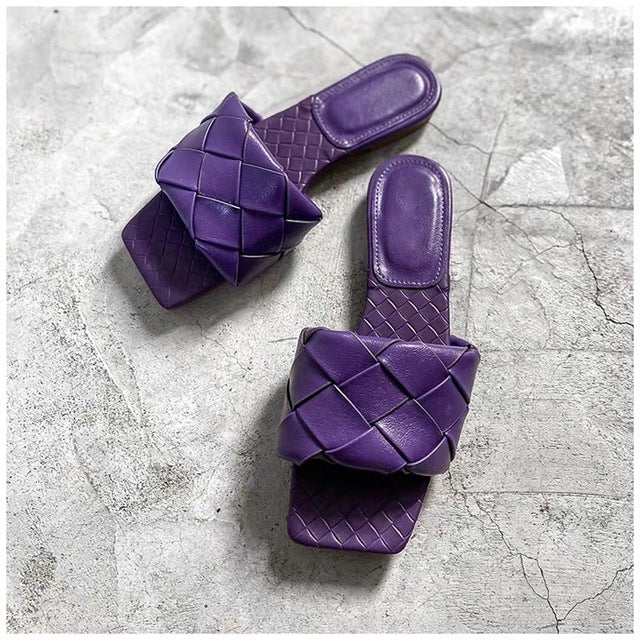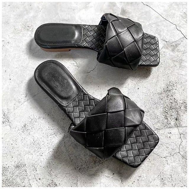 Sandalias planas de microfibra con diseño de tejido