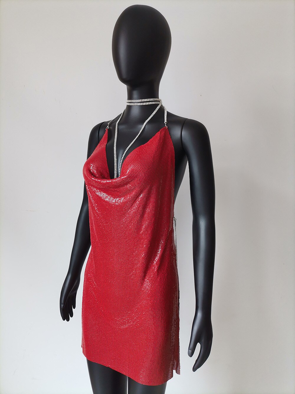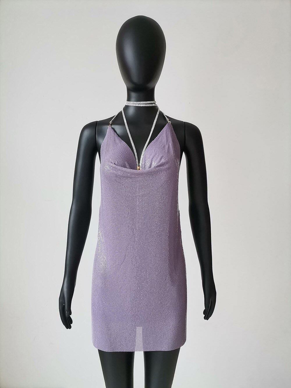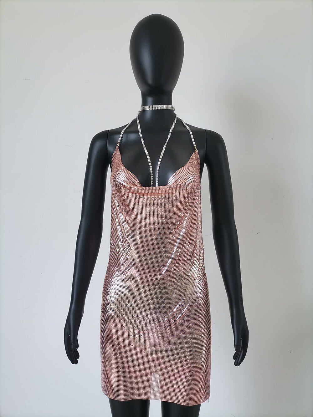 The Change The Hear Mini Dress features a dropped waistline, a neck-mounted design, sleeveless arms, a straight silhouette, a solid pattern type, a Polyester material, and a length that reaches just above the knee making you feel so luxurious at the party. An eye-catching backless detail completes the look. Wear this dress with pearl earrings to give a more elegant touch to your outfit.