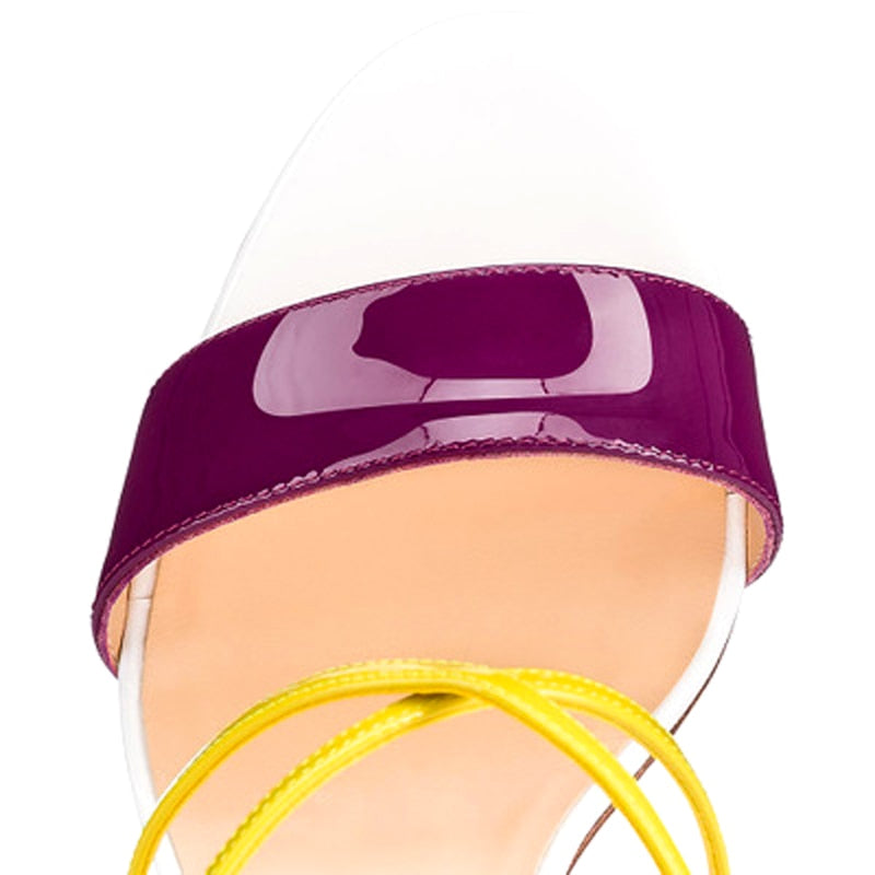 Sandalia de tacón de colores alegres con tacones finos de piel sintética