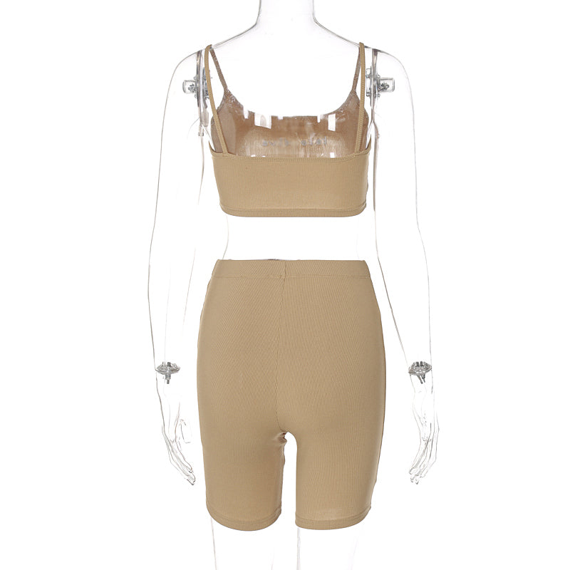 Pantalones cortos y camiseta sin mangas corta de spandex de poliéster sólido Ropa deportiva