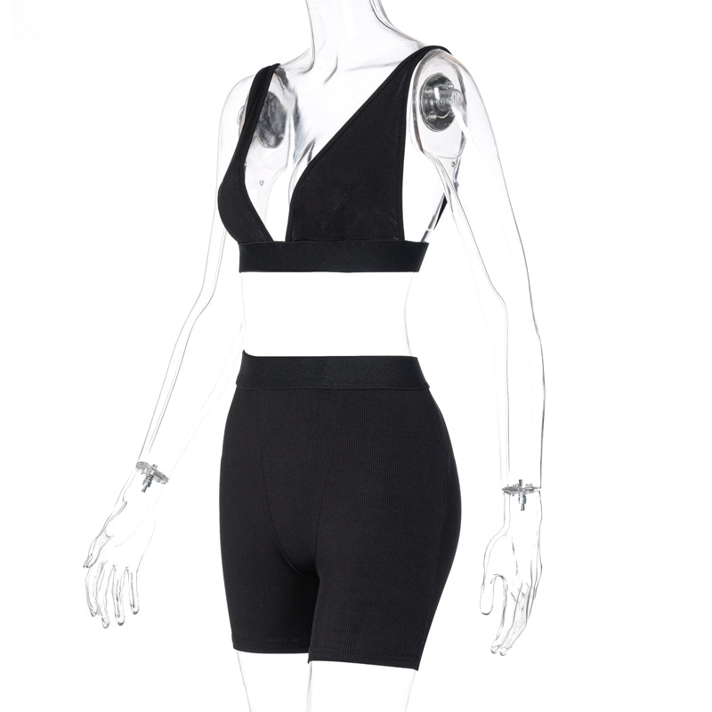 Camiseta sin mangas corta con cuello en V y pantalones cortos con cintura elástica con material de poliéster y spandex