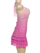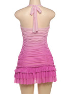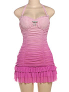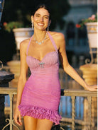 Elevate your evening with the Crystal Dusk Mini Dress, crafted from a sleek blend of polyester and spandex for a figure-hugging fit that moves with you. The daring halter neckline highlights your shoulders and adds a bold edge, perfect for making a statement at any night out. This mini dress combines comfort and confidence, ready to turn heads wherever you go.