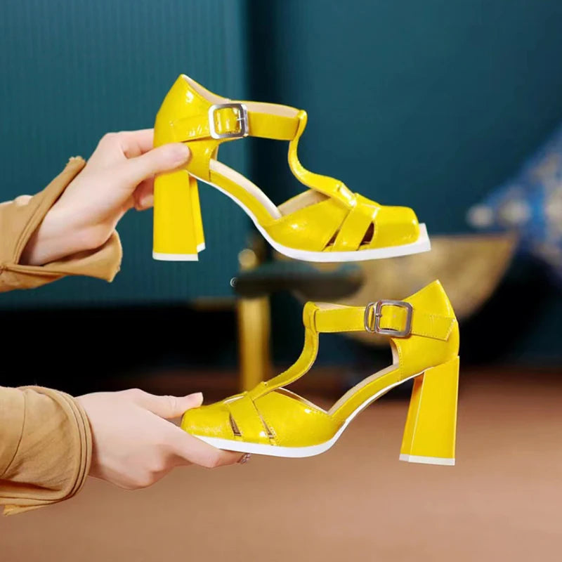 Elevate your style with our Delightful Designs Pumps Shoes. These shoes feature a patent leather upper for a chic look, while the square toe and square heel add a touch of modern sophistication.