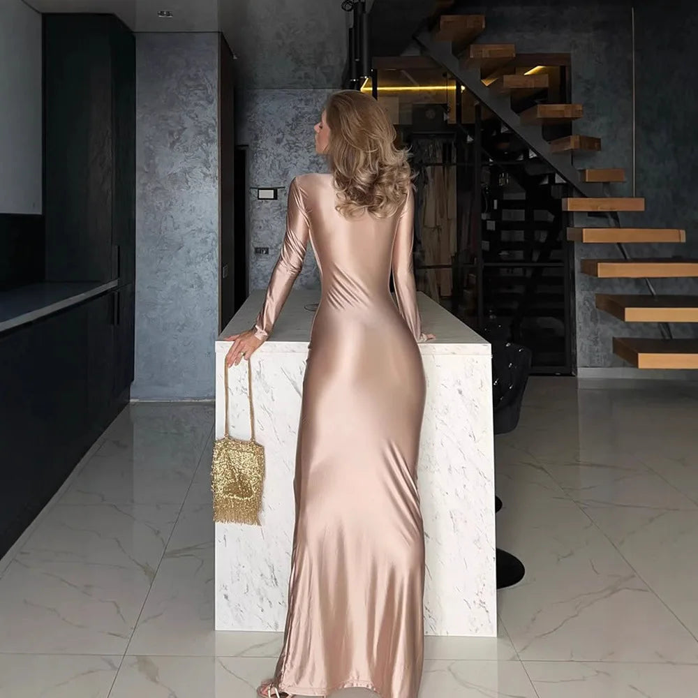 Command respect in this majestic maxi dress engineered for those who refuse to blend in. The dynamic swinging collar frames your face with architectural precision, while the polyester-spandex blend moves with you, offering both structure and flexibility. Its solid, unadorned palette speaks volumes—letting your presence do all the talking. This is the dress for women who understand that true power lies in knowing exactly who you are and owning every inch of the space you occupy.