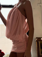 Elevate your evening look with the Dimmed Starlight Mini Dress. Crafted from a sleek blend of polyester and spandex, this dress offers both comfort and a form-flattering fit. Its solid, pleated silhouette adds a captivating texture that moves with you, perfect for turning heads at any event. Step into daring elegance and let your style shine effortlessly.