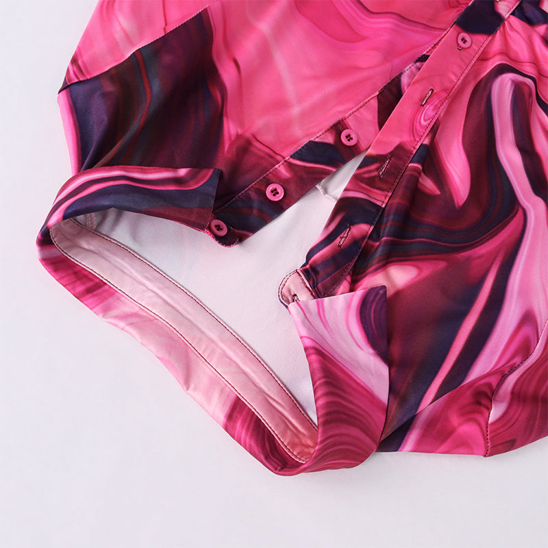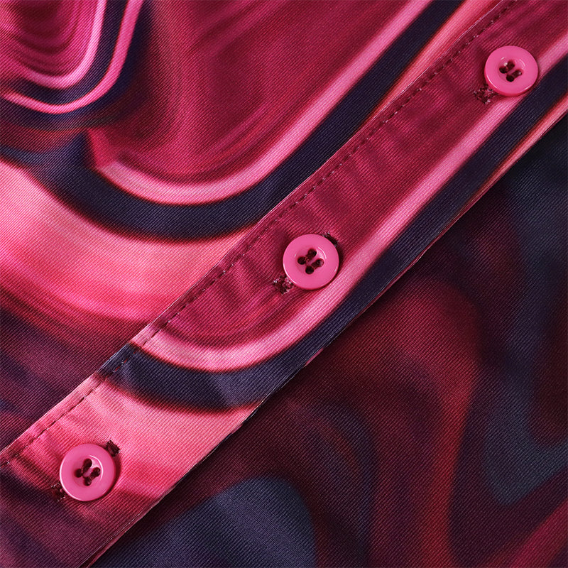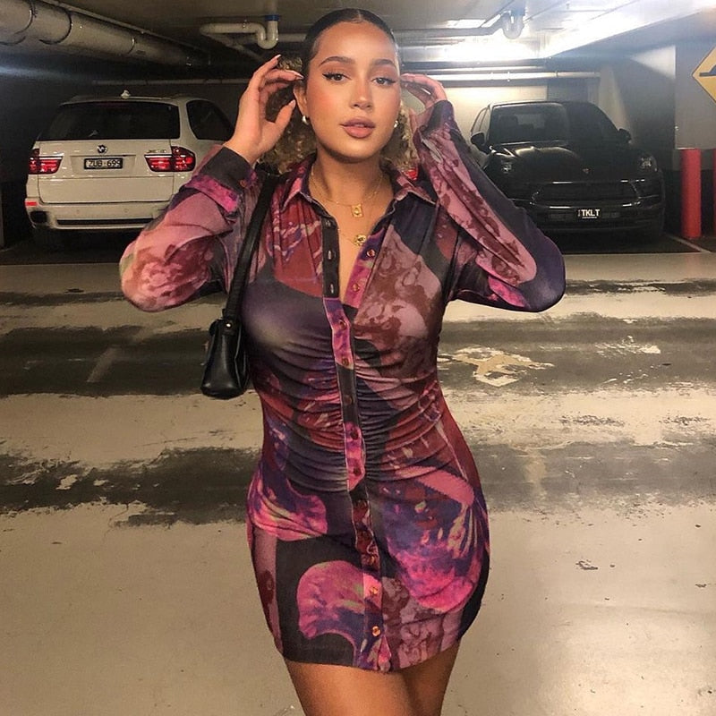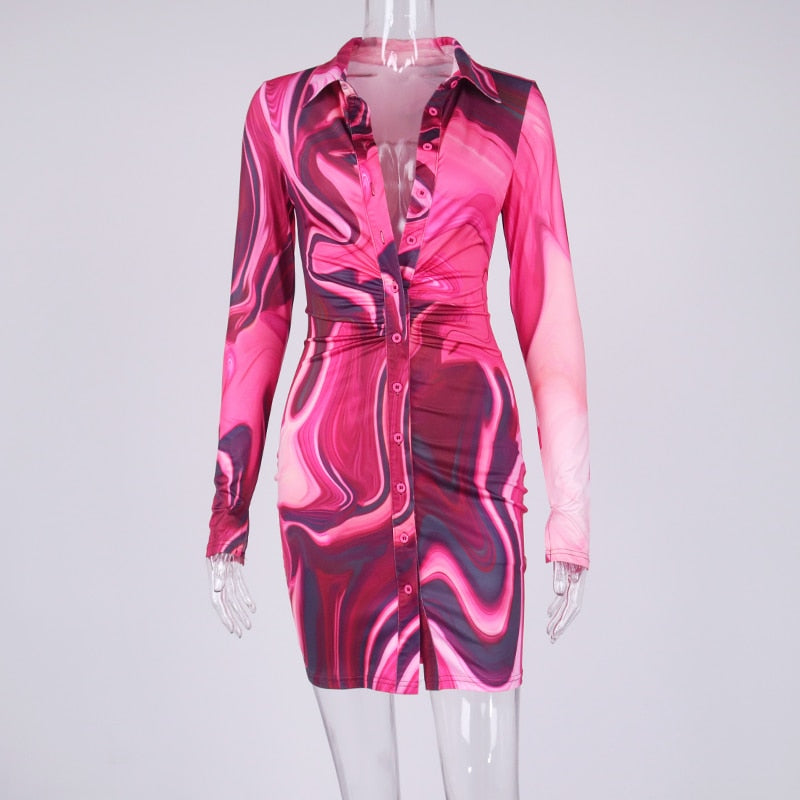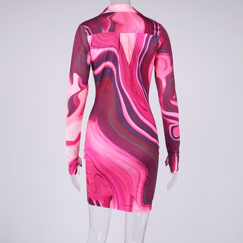 This colorful long-sleeved mini dress has a modern style that is sure to be a crowd-pleaser. The tie-dye pattern is an eye-catching feature that is sure to get noticed by all. The turn-down collar gives off a relaxed feel that is sure to make you feel comfortable and stylish. The single-breasted closure down the front is a practical detail that keeps the dress from slipping forward.
