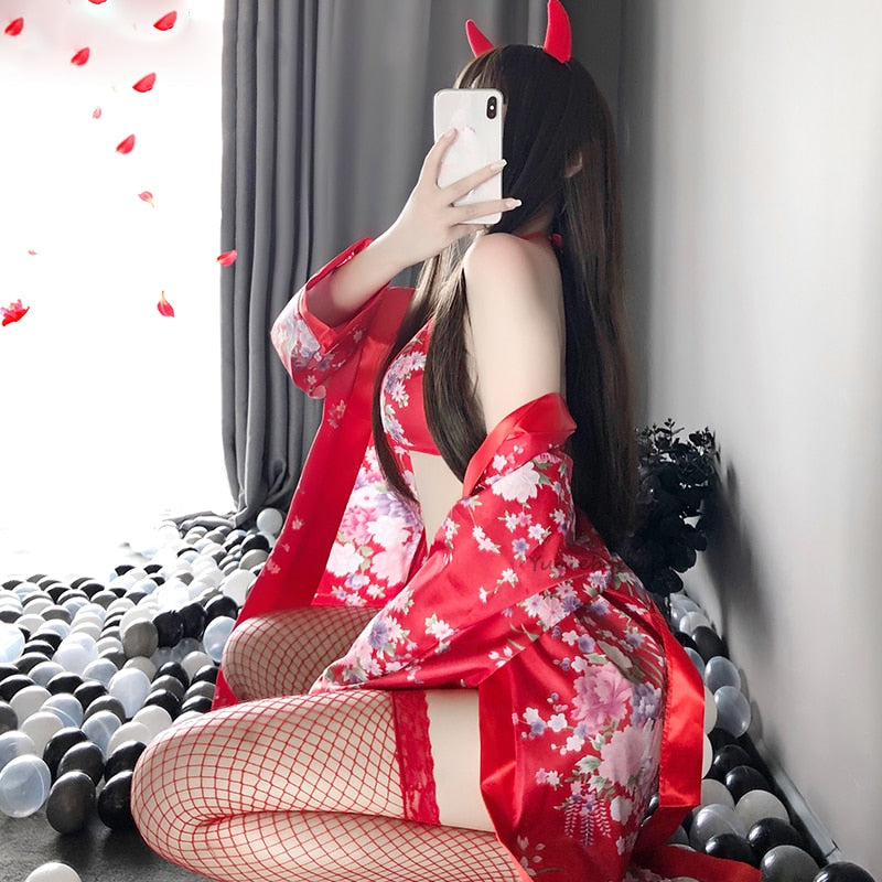 Conjuntos de lencería roja con estampado de flores de 3 piezas