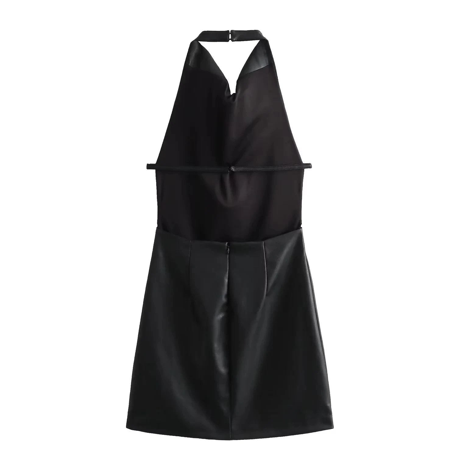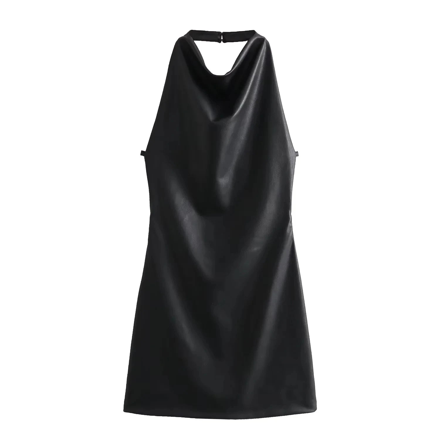 This stunning mini dress will have you feeling confident and stylish! Made of synthetic leather, the solid color and backless design add a touch of elegance. Perfect for a night out or a special occasion, this dress will turn heads.