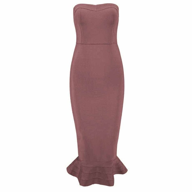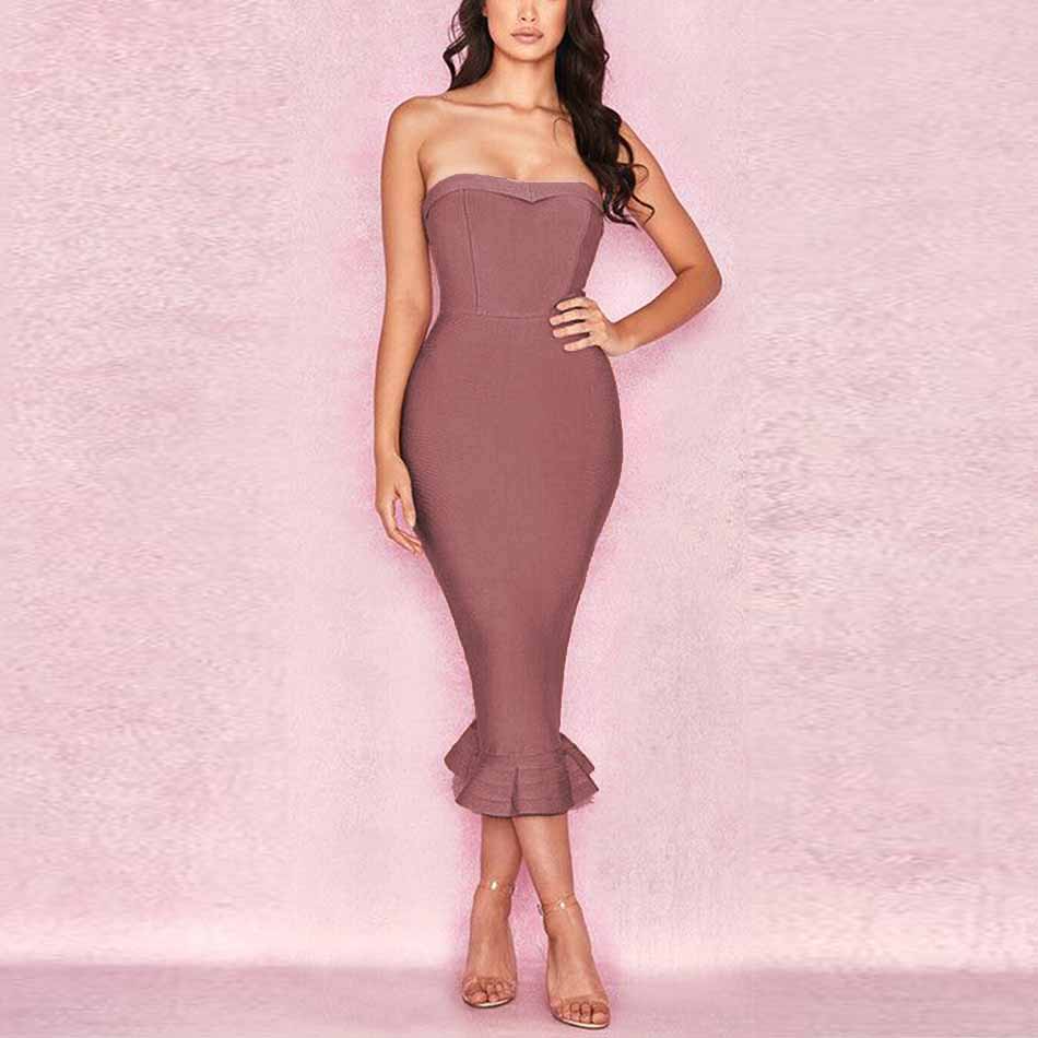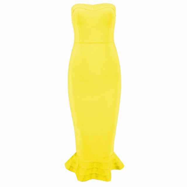 <transcy>Elegante vestido largo sin tirantes con cuello oblicuo y sirena sin mangas para mujer</transcy>