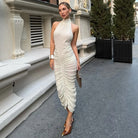 The Exile Still Echoes Midi Dress commands attention with its daring knee-length silhouette and sleek pullover design. Featuring bold folds that add depth and movement, this dress effortlessly blends edgy style with confident elegance, perfect for making a striking statement wherever you go.