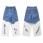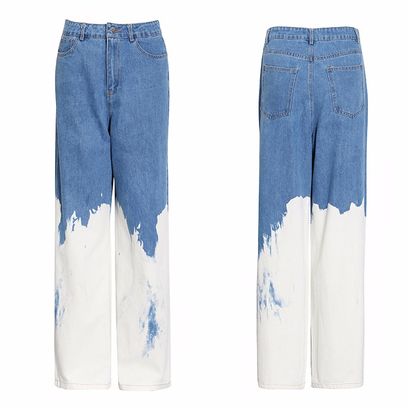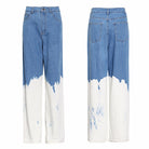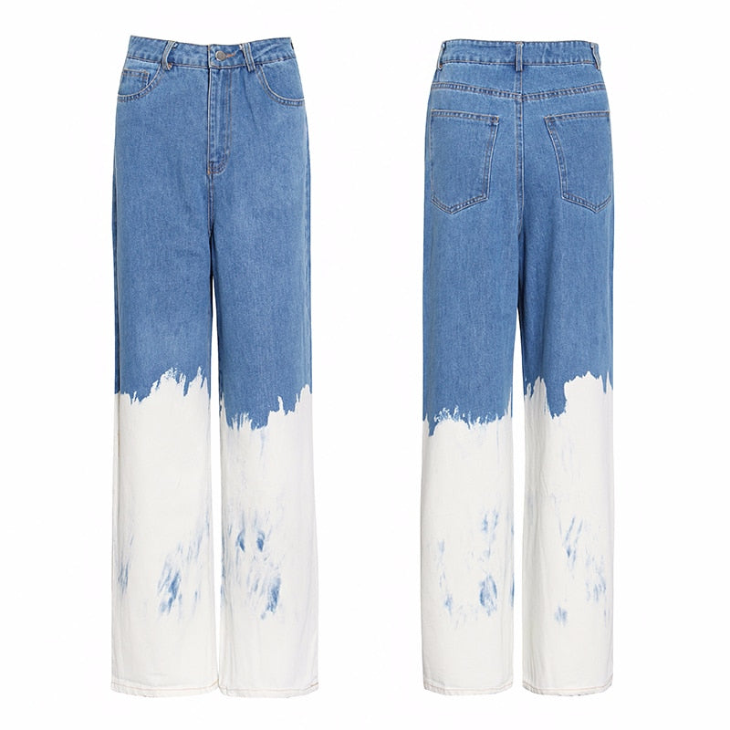 Vaqueros holgados de cintura alta con cierre de botón, decoración de pintura y material de algodón y poliéster