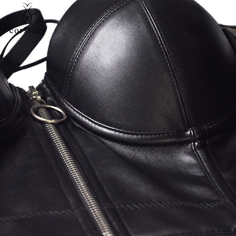 Sujetador tipo corsé push-up de una pieza con aros y aros en la espalda, estampado sólido, poliéster, licra, cuero sintético