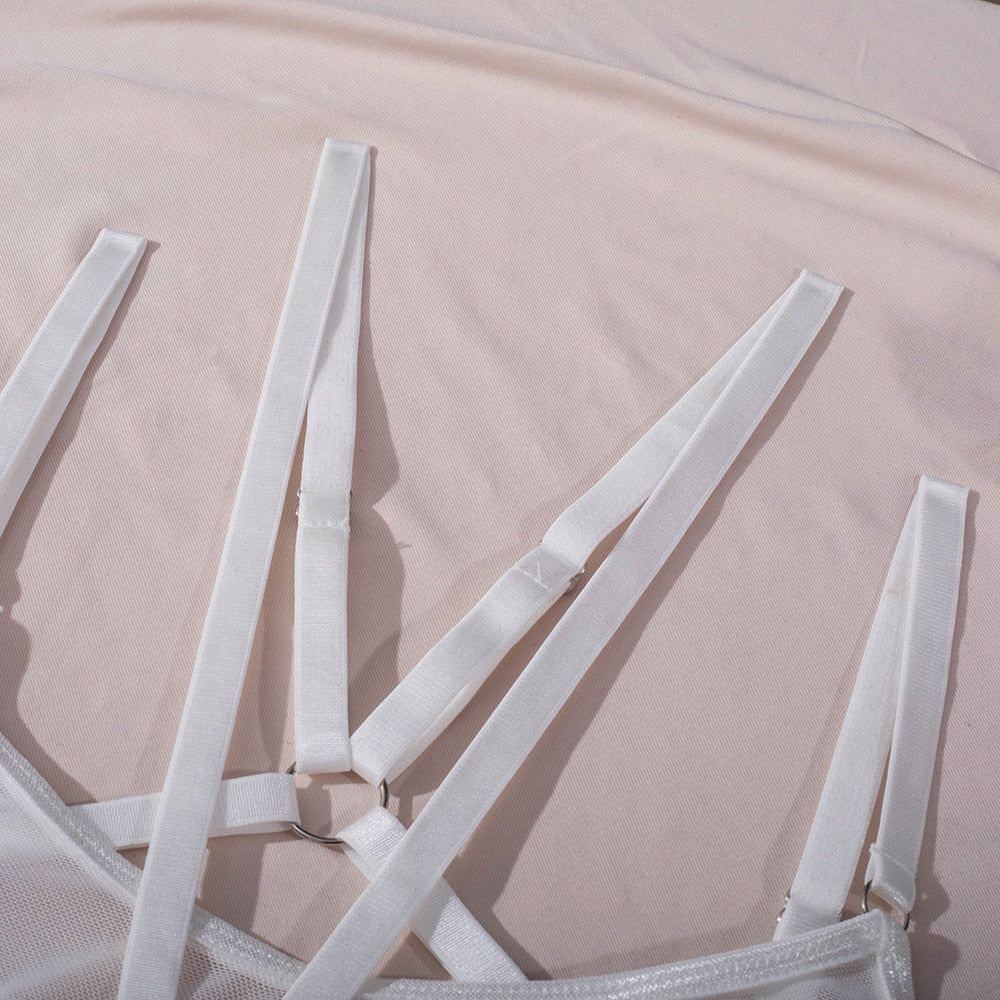 This sexy and stylish set is a great way to add a little something extra to your lingerie. The two pieces are crafted from a comfortable and breathable linen blend material. This set has a classic design that is sure to become a staple in your lingerie collection. The classic white color is a versatile choice that looks good with any outfit.