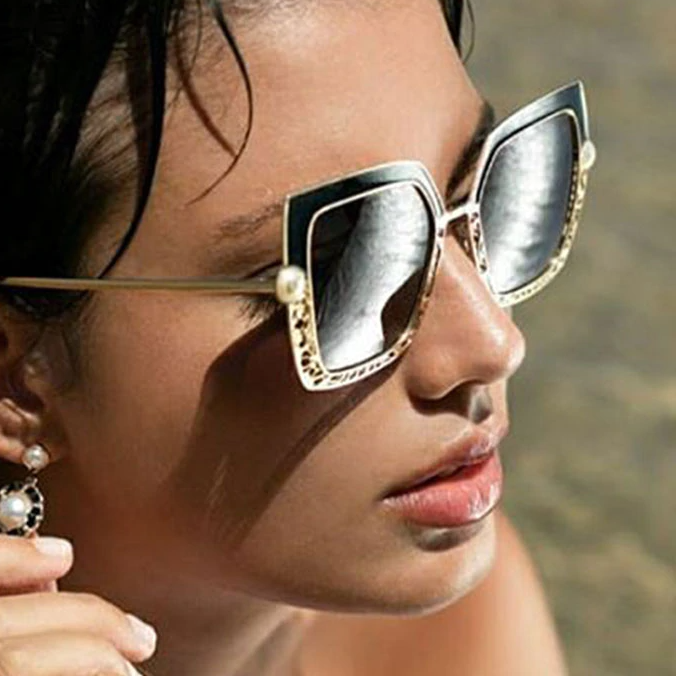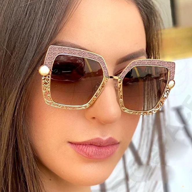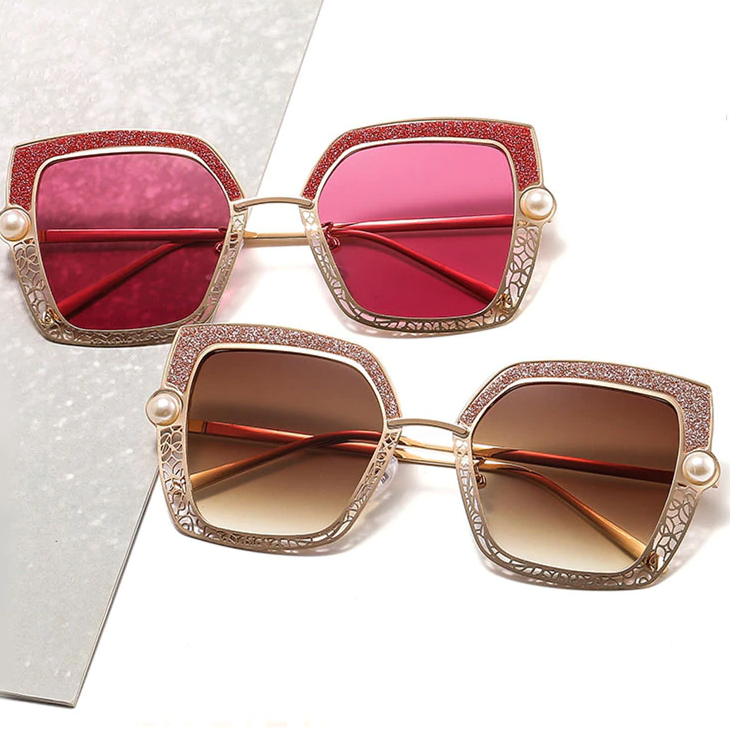 Gafas de sol de lentes acrílicas UV400 con montura de aleación y decoración de perlas