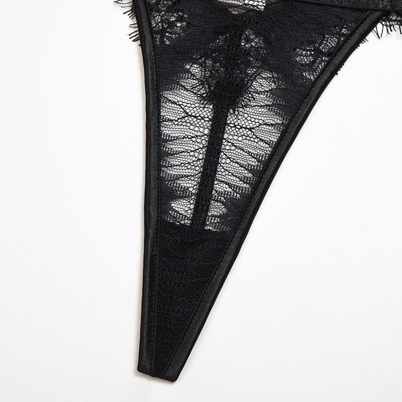 Conjunto de sujetador de poliéster con estilo halter y decoración de encaje