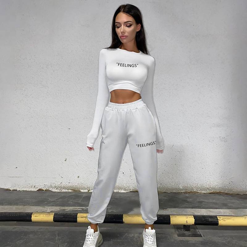 Pantalón jogger con cintura elástica, camiseta corta de manga larga con estampado de letras y material de poliéster