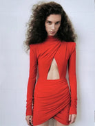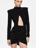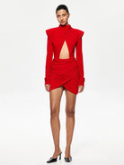 Ignite your confidence in this bold mini dress that commands attention. Crafted from a dynamic polyester and spandex blend, it hugs your curves with a sleek, stretchy finish that moves with you.