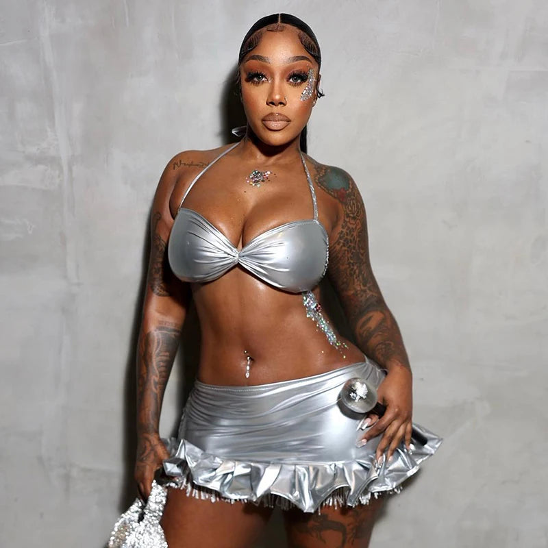 Elevate your style with the Fire Between Us Skirt Set! This sexy and club-ready ensemble is made from high-quality polyester, ensuring both comfort and durability. The lace closure adds a touch of elegance, while the solid pattern and sheath silhouette slim and flatter your figure. Be bold and confident with this mini skirt and super-short top!