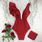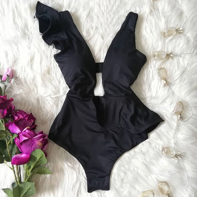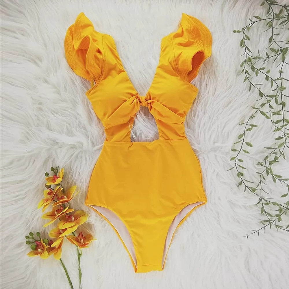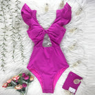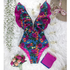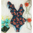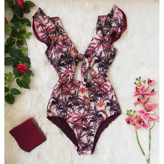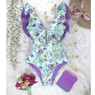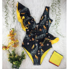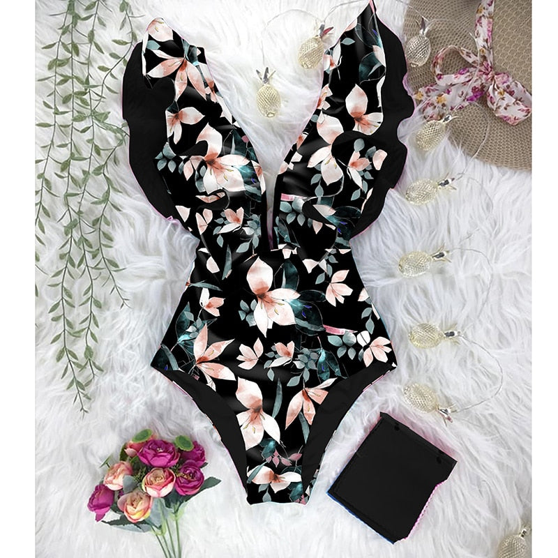 Traje de baño de una pieza con mangas de mariposa y estampado floral con material de poliéster