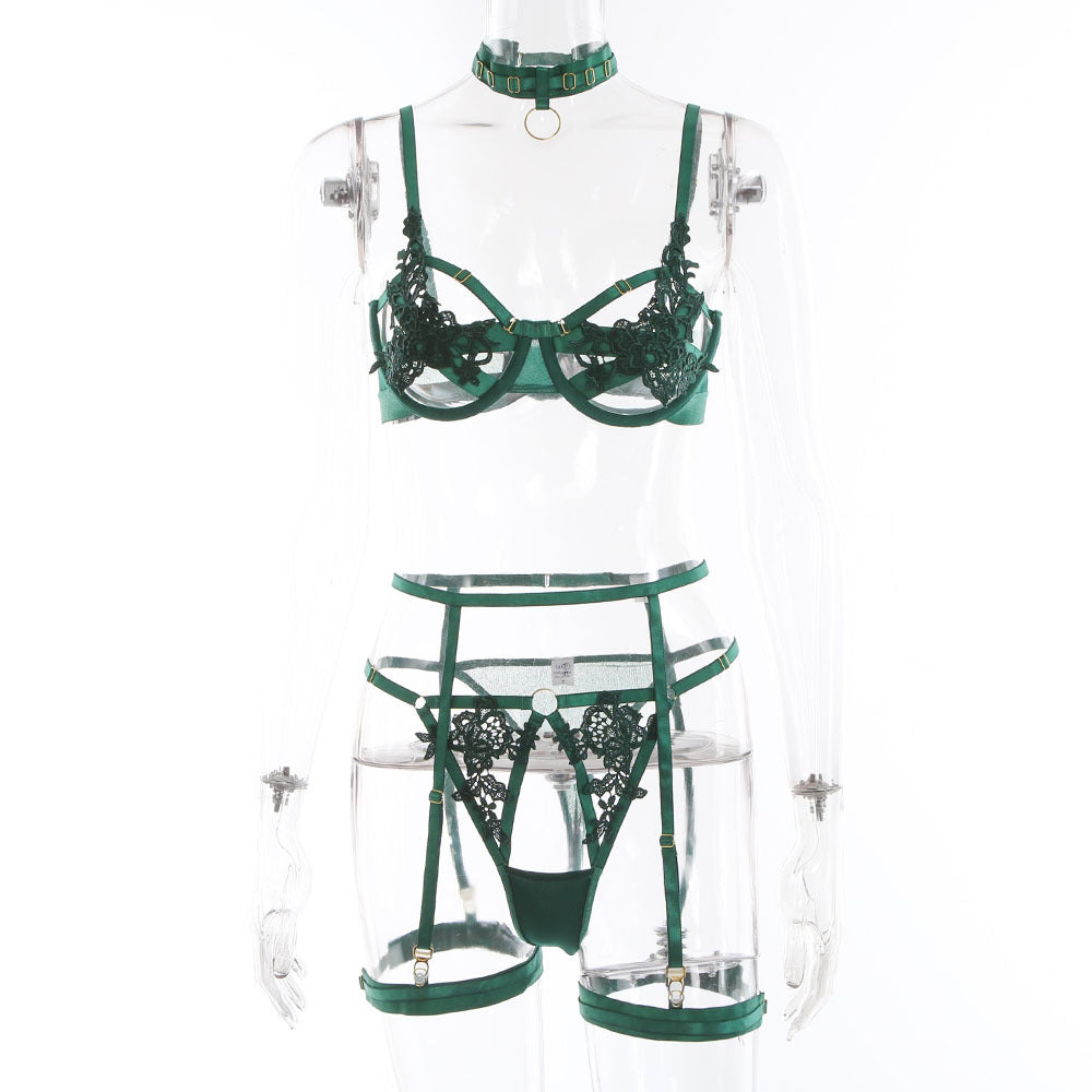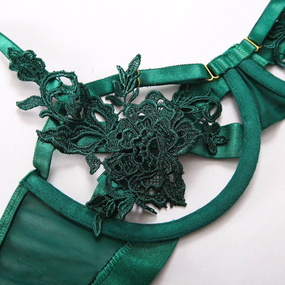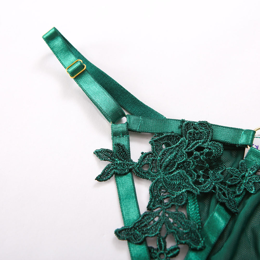 The most classic lingerie pieces are made from delicate lace. The unique shape of this bra is emphasized by the sheer green color. This bra is perfect for pairing with a strapless dress or even a sheer top.