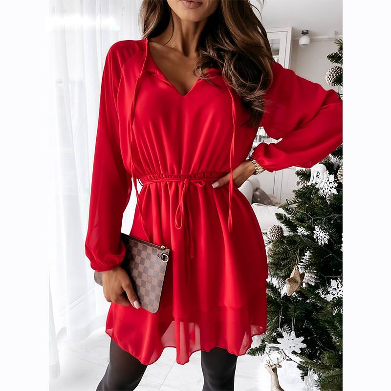 This beautiful and stylish mini dress is ideal for day-to-night wear. It's a versatile choice that can be dressed up or down for a casual chic look. The classy chiffon material is lightweight and comfortable.