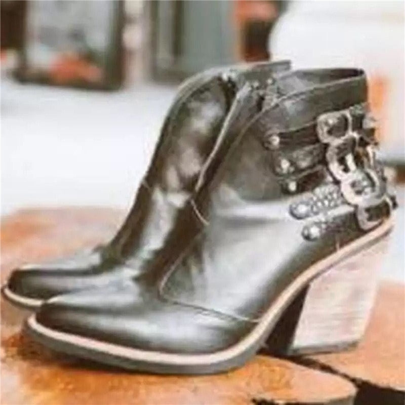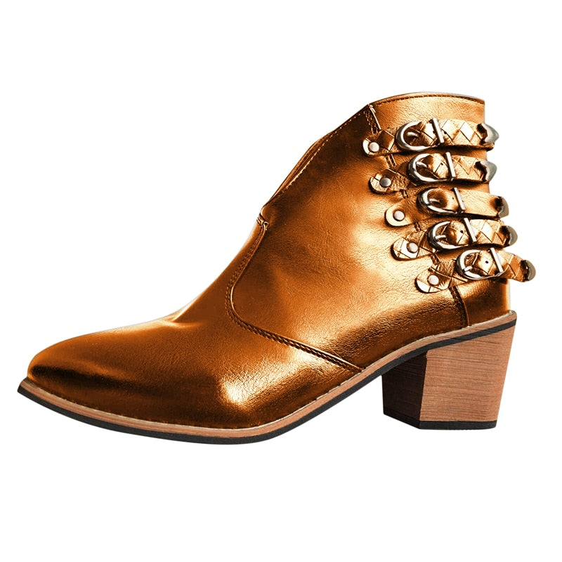 A statement but the versatile shoe, these pointed-toe ankle boots with buckle straps bring a touch of glamour to any outfit. The buckle strap design gives them a chunky and high-fashion look that's perfect for the high-end fashionista. For a chic and flattering finish, choose a gorgeous color to complement a wide variety of looks.