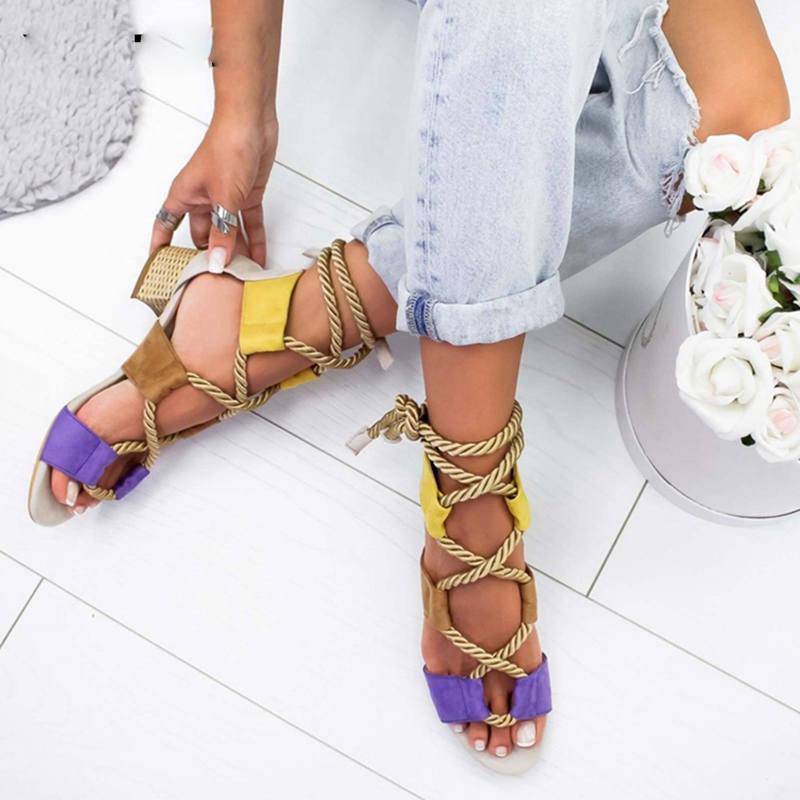 Sandalia de tacón medio de gladiador de bastón de colores con correa única en el tobillo