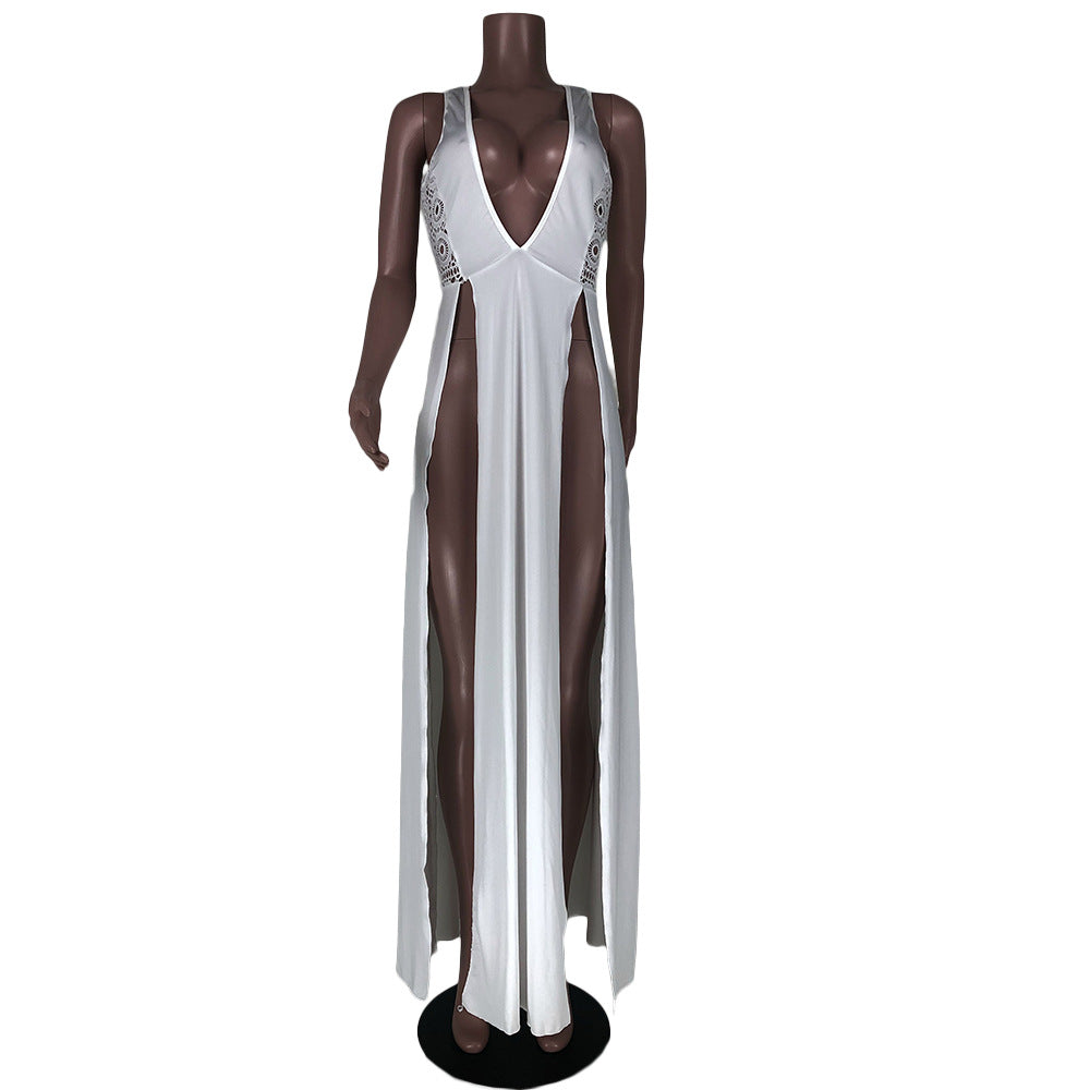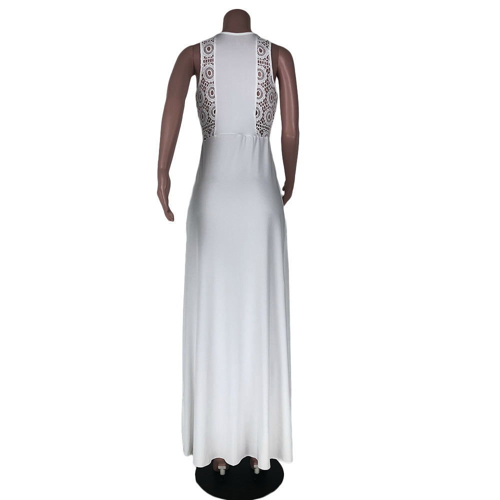 The maxi dress is perfect for any event where you want to look elegant and feminine. It features a polyester fabric, sleeveless, lace decoration, and solid white color.