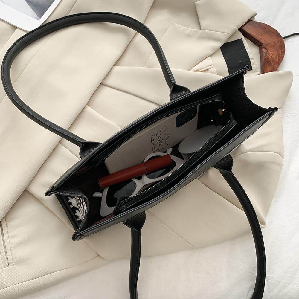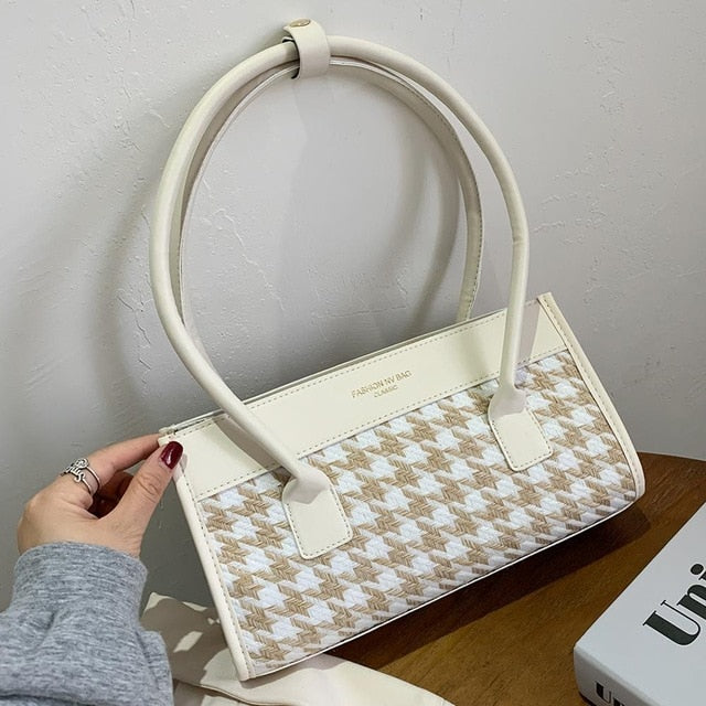 Bolso de hombro de PU con estampado de pata de gallo y cierre de cremallera