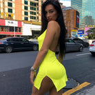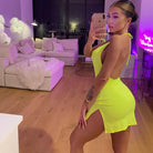 Minivestido de poliéster de algodón sólido con tirantes halter y espalda descubierta