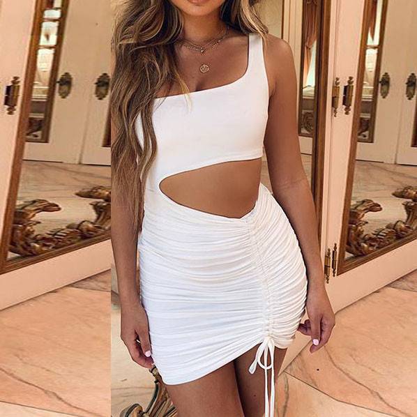 <transcy>Mini vestido ajustado sin mangas con un hombro y vendaje para mujer</transcy>