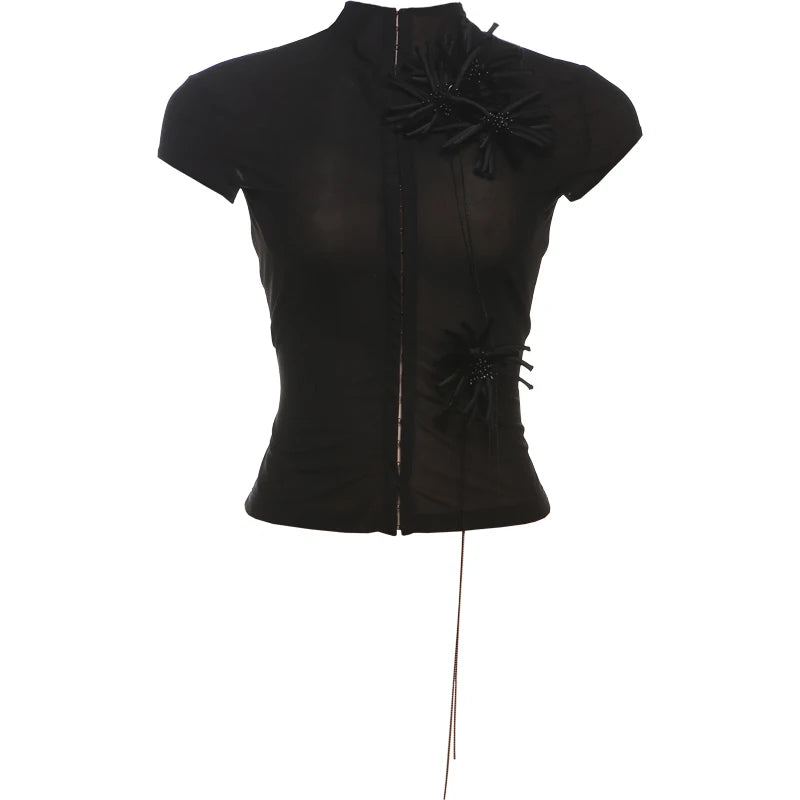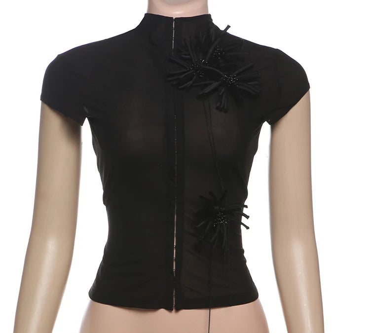 Experience the sheer elegance of our Howling Shadows Crop Top! Made with a blend of polyester and spandex, this see-through top is perfect for a night out. Embrace your inner fashionista and turn heads with every step!