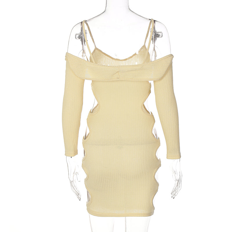 The perfect dress for a night out on the town! This mini dress is a knitted fabric with spandex for a form-fitting, comfortable fit. The spaghetti straps offer a casual and easy-to-wear feel. The dresses hollow out and has a solid color.