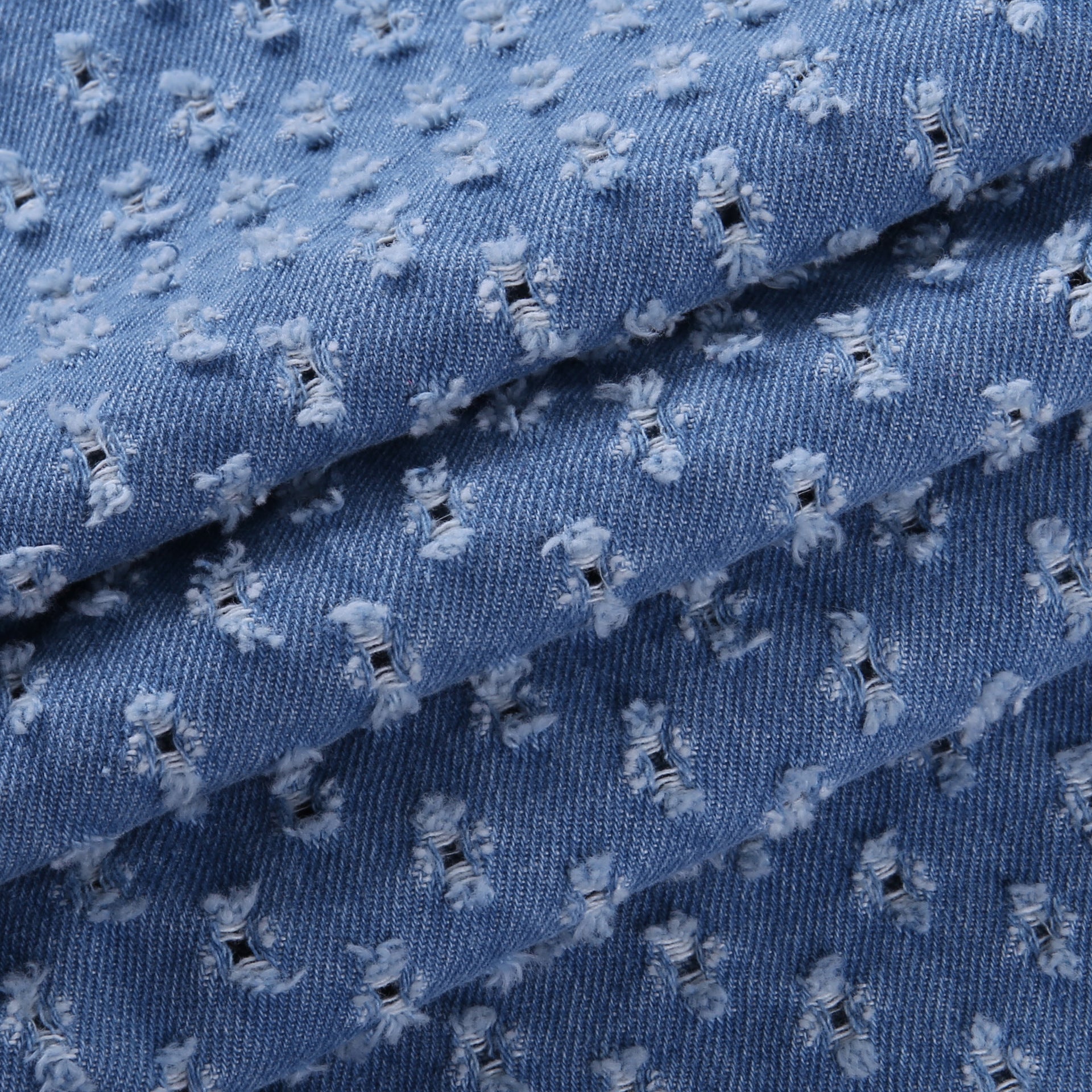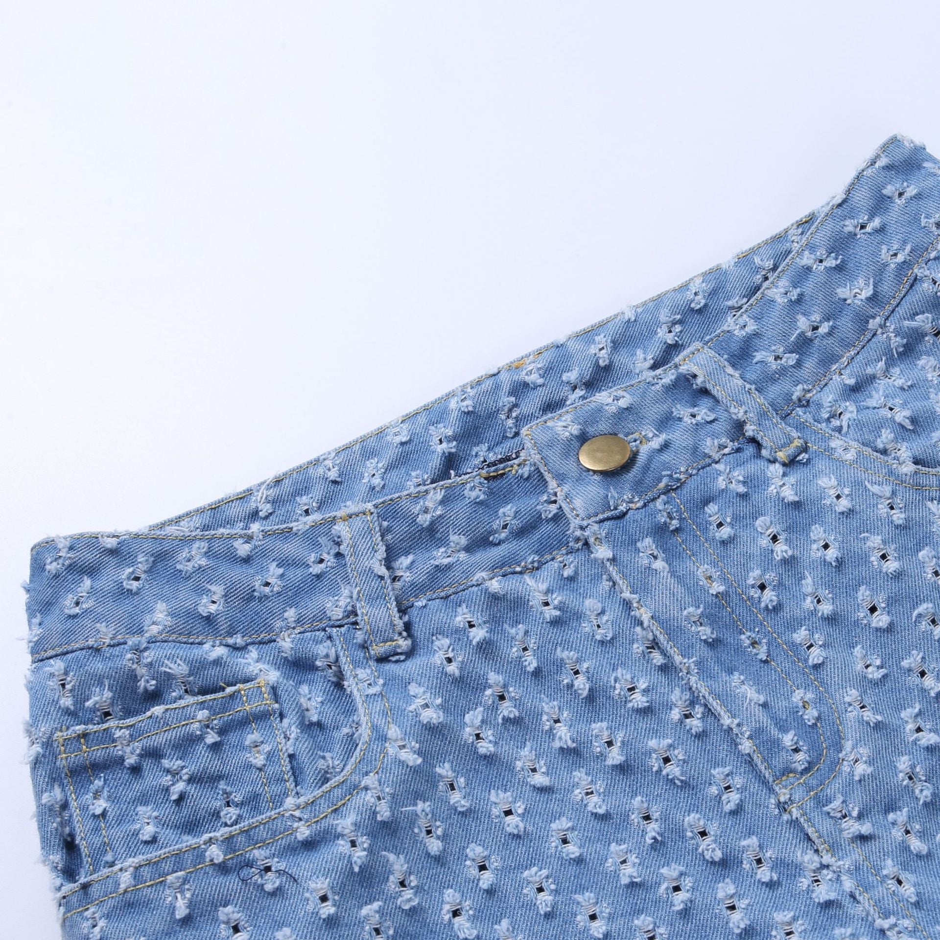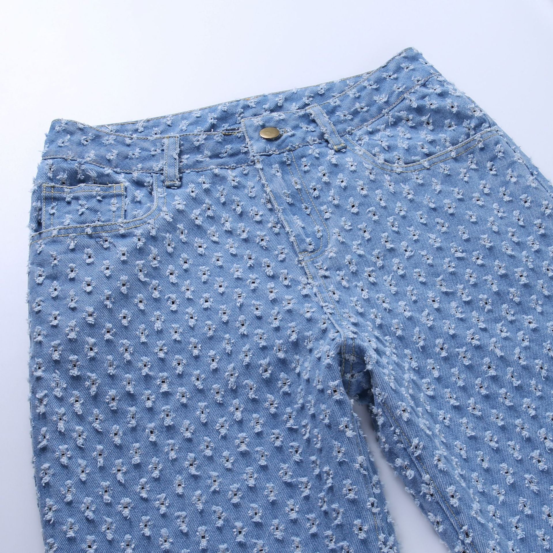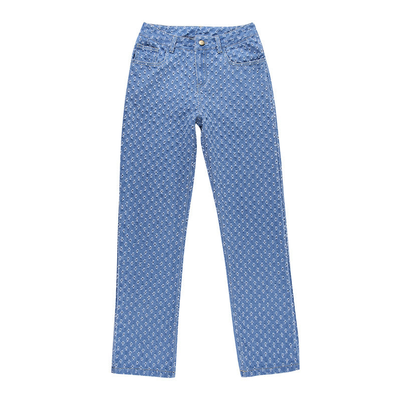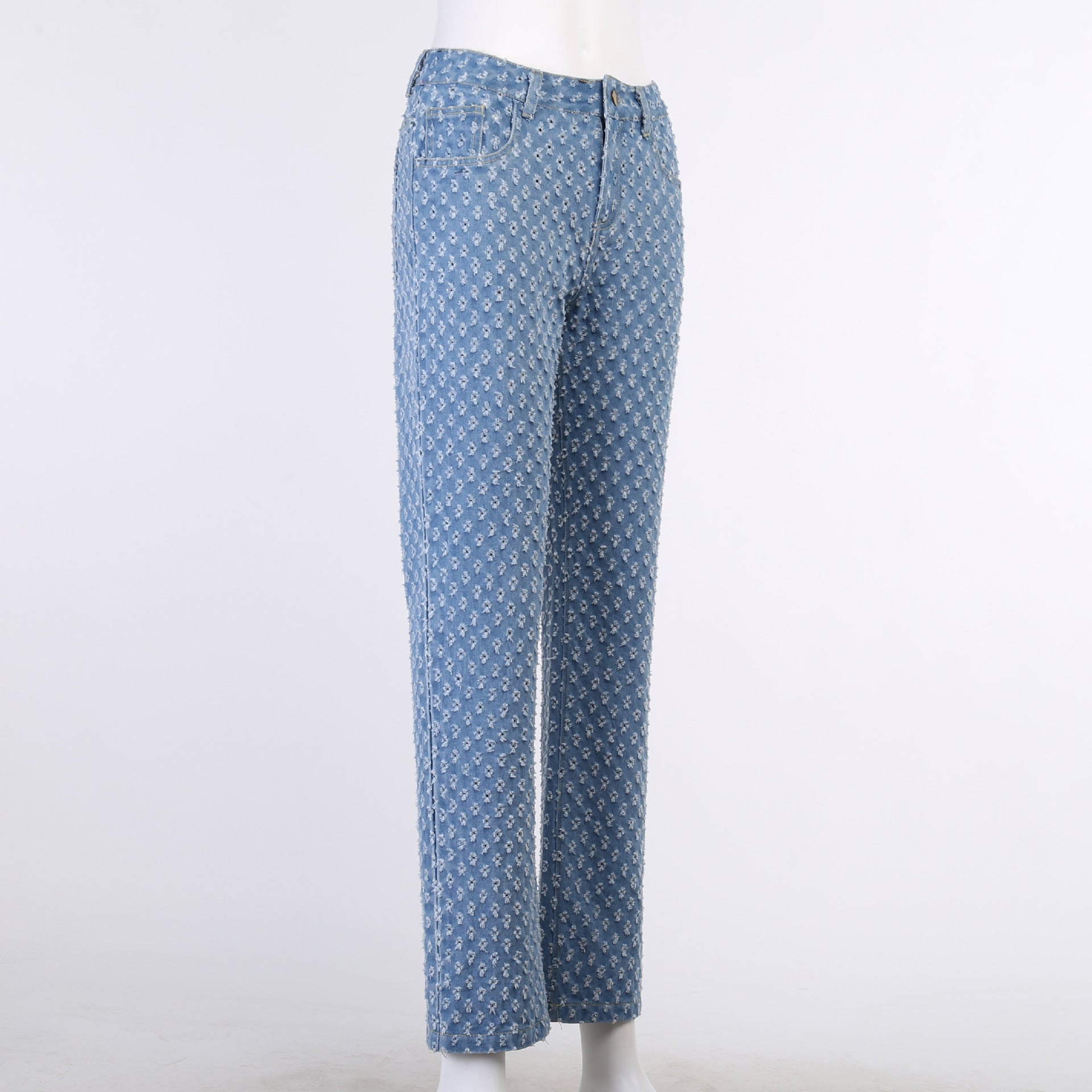 Vaqueros de longitud completa de algodón y poliéster con decoración geométrica ahuecada y cierre de botones