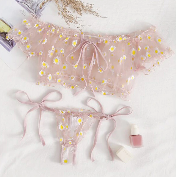 Conjuntos de lencería transparentes con estampado de margaritas y cierre de hilo