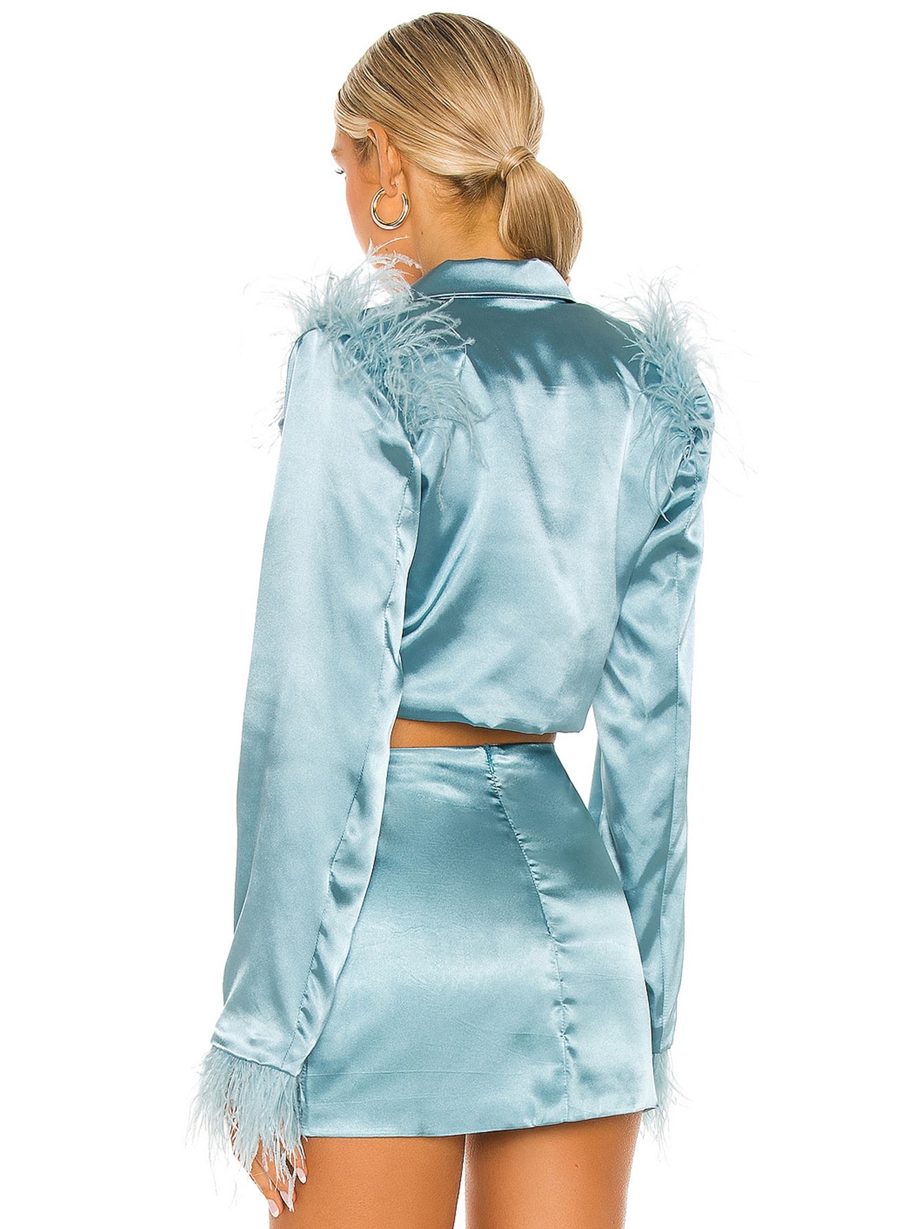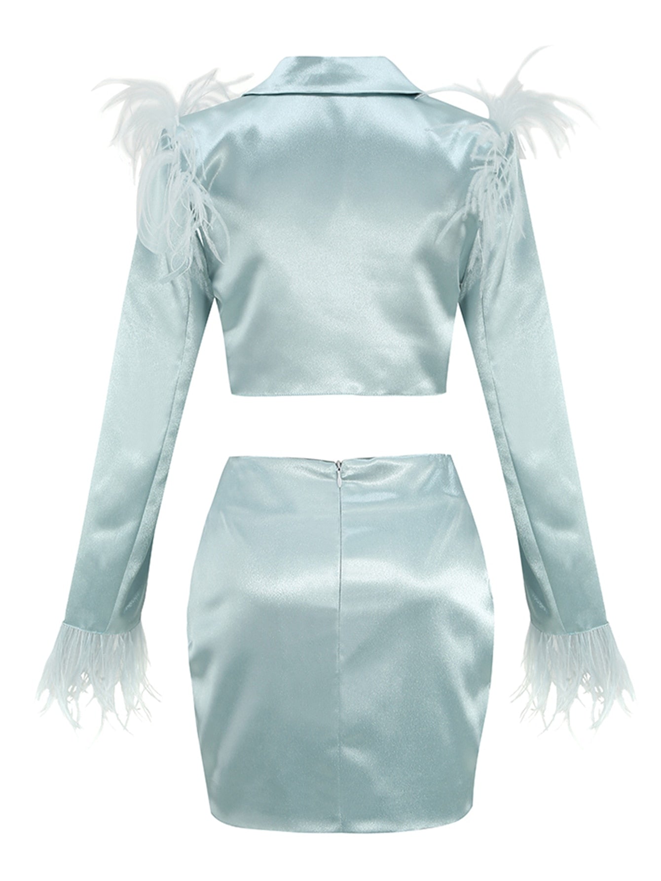 This versatile skirt set comes with two items that are both easy to wear. The set has a slim and stylish silhouette that can be worn with a number of different options to create many looks. The satin material gives neatness and a luxurious feeling to your outfit.