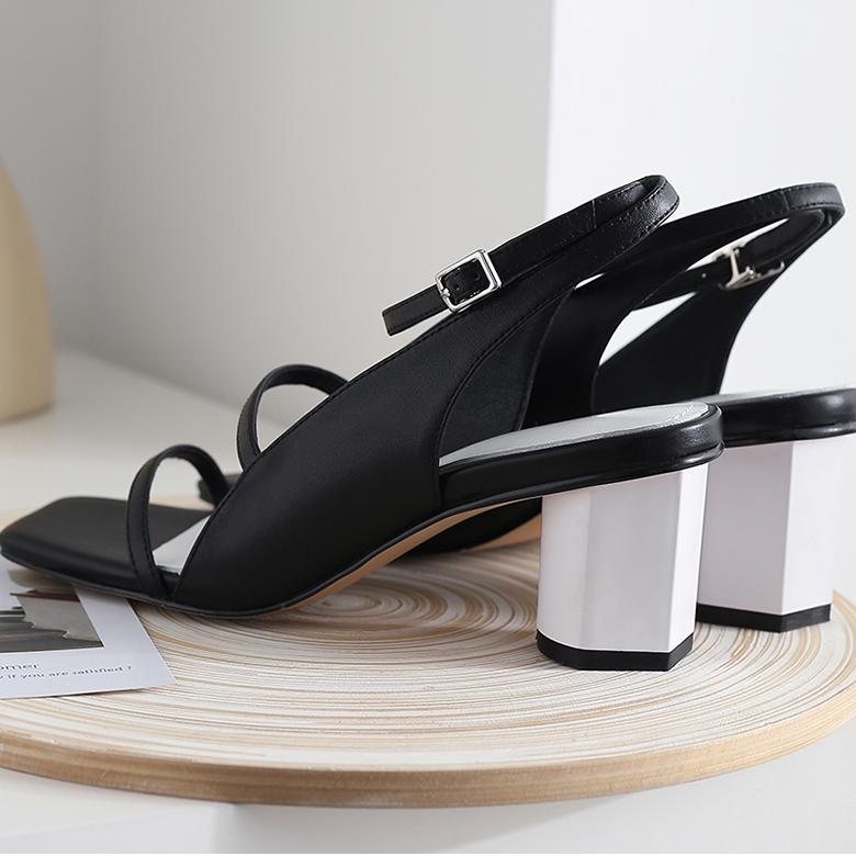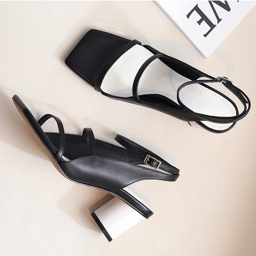 Sandalias con espalda descubierta y rasgaduras cuadradas Cierre de hebilla y material de piel de vaca