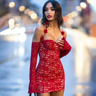 This audacious mini dress combines delicate lace with a mesmerizing floral print on premium polyester fabric. The daring cut and fitted silhouette create an unforgettable look that radiates confidence and sophistication. Perfect for those moments when you're ready to make a bold statement and own the room. Dress it up for a night out or keep it casual—either way, you'll turn heads.