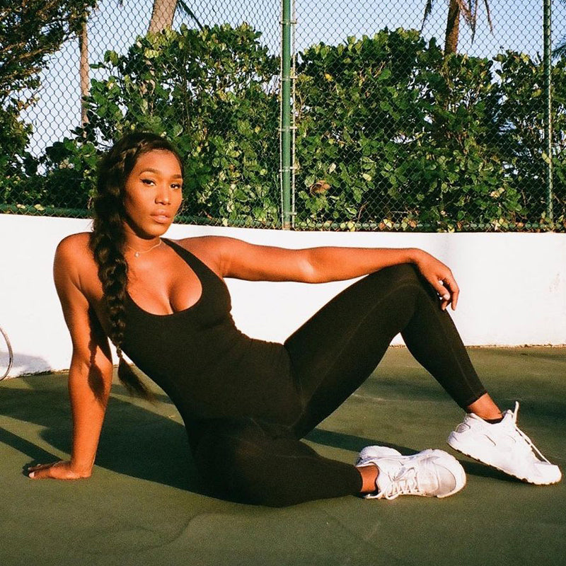 Mono liso sin mangas con estilo de espalda ahuecada y hecho de material de poliéster spandex