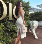 This is another dress that is both comfortable and flattering. A halter neckline ensures a more flattering shape. The beads around the neck and the halter design give it a bohemian look. This midi-length dress is easy to wear and looks great with other summer items.