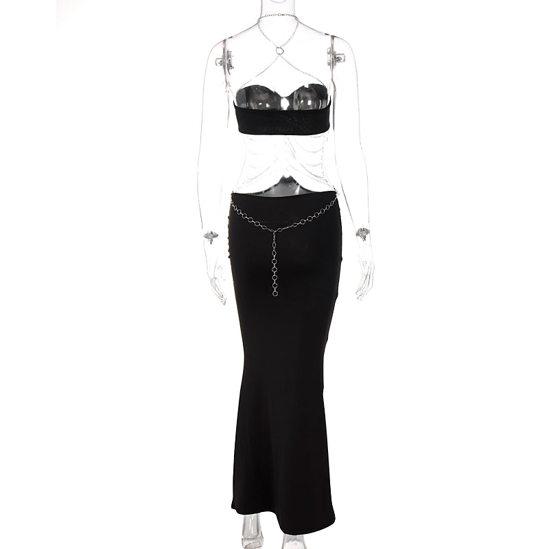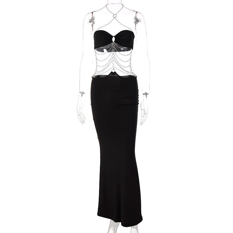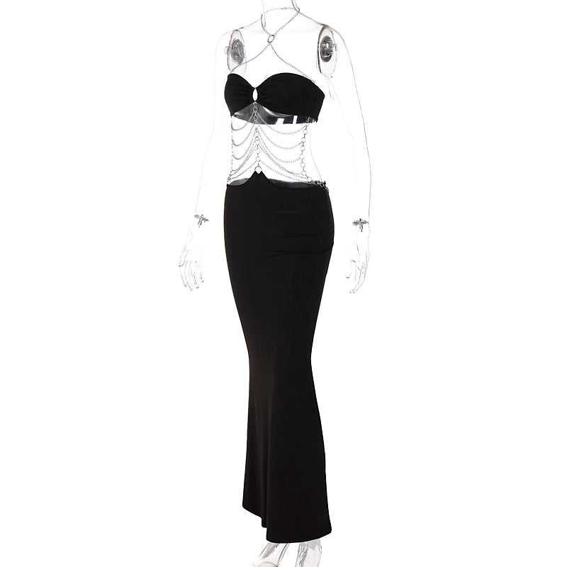 This dress is made from the finest quality 100% polyester spandex. The dress was sleeveless and had a sweetheart neckline with a halter chain strap. There is a body chain combination that turns this floor-length dress into the ultimate dress for you.