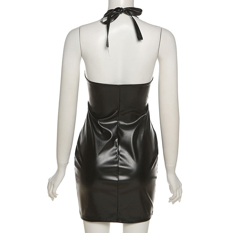 This mini dress is the perfect go-to for a fresh, spring look. Crafted with a combination of PU leather, polyester, and spandex for a sleek, comfortable fit, it also features a solid design with hollow-out detailing for a classic, yet modern feel. Style with your favorite accessories for a timeless and eye-catching look.