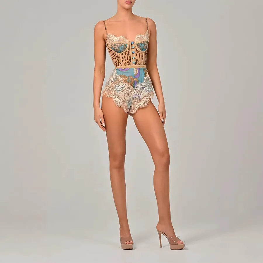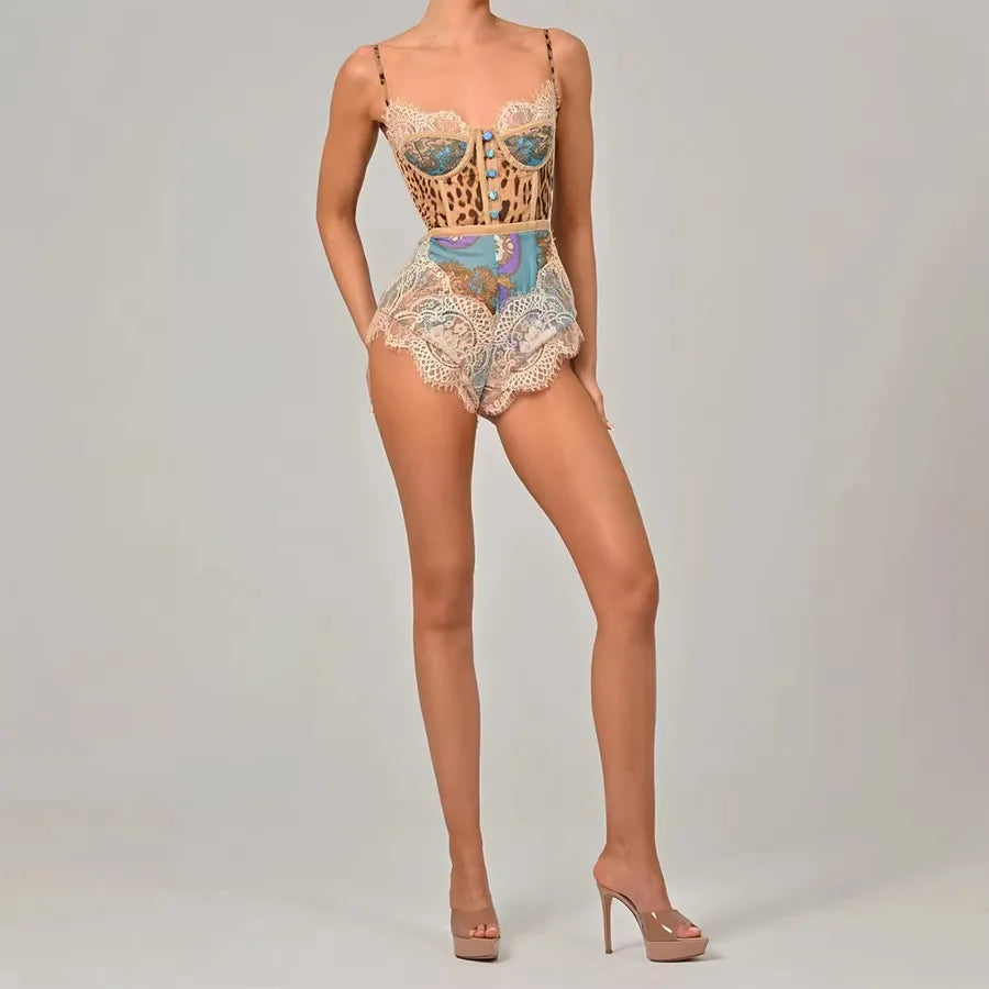 Leopard Patchwork Lace Design Bodysuit