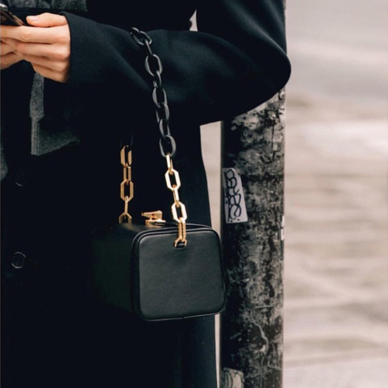 Bolso de hombro de PU sólido con cierre de pasador y correas de cadena