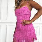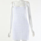 Minivestido de poliéster con cuello oblicuo liso sin mangas ahuecado con decoración