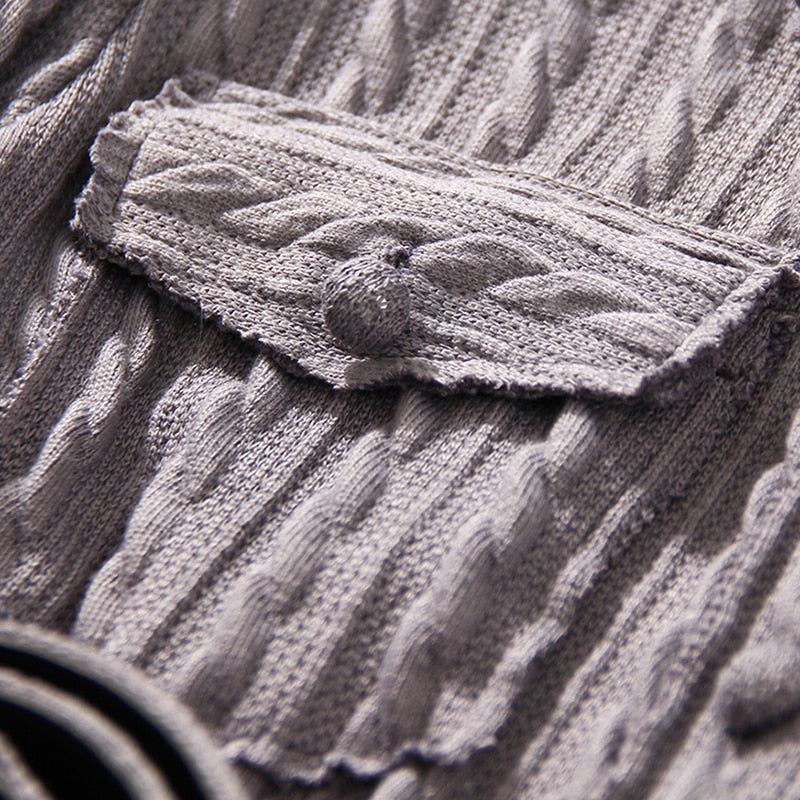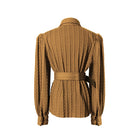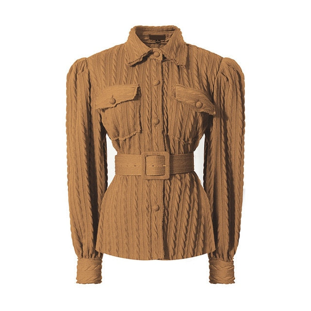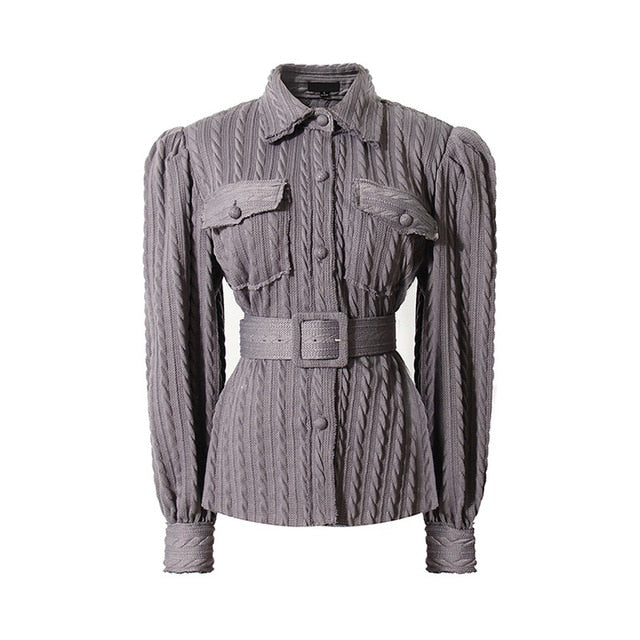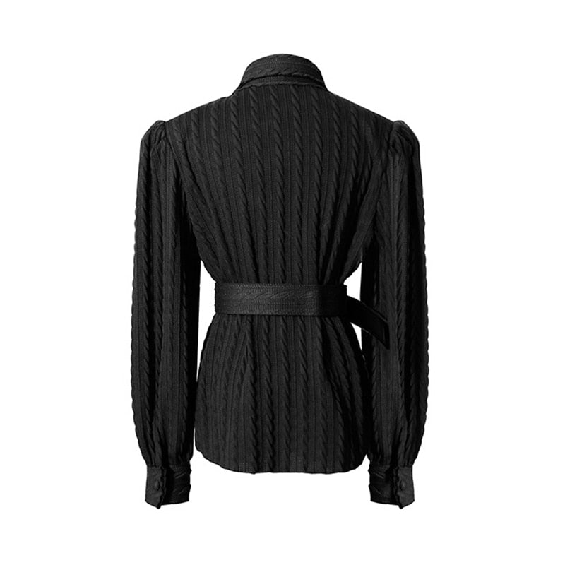 Camisa de poliéster de algodón sólido con cuello vuelto de manga larga con cierre de botonadura simple, bolsillo y adorno de cinturón