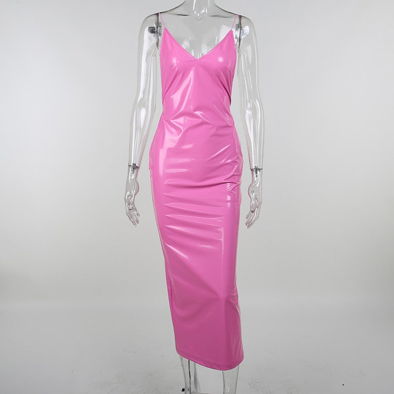 Backless midi dresses are the perfect way to effortlessly add stylish and flattering style to any outfit. This midi-length dress has a chic and sexy look that is sure to get noticed. A stylish and flattering v-neckline and glossy PU material ensure you looks your best.