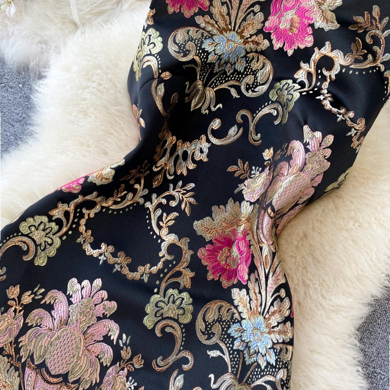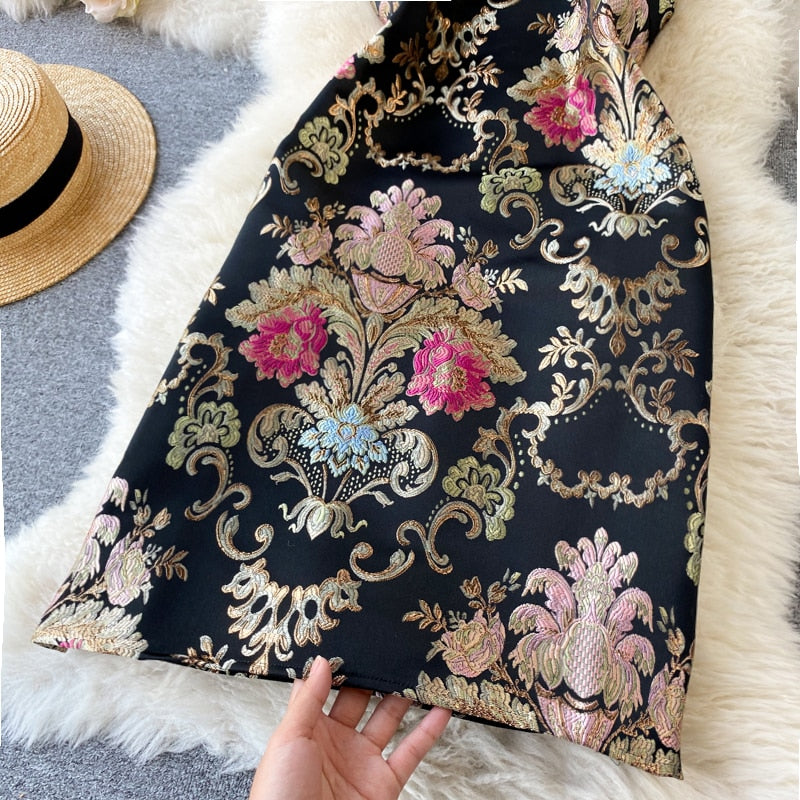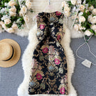 Minivestido sin mangas con cuello en O y estampado floral vintage