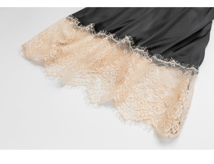 Conjunto de camisón y braguita de spandex de satén sólido con tirantes finos y parte inferior de encaje floral
